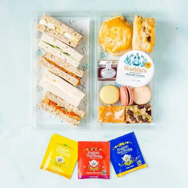 Handmade Scones, Fruity Strawberry Jam and Cornish Clotted Cream. Caramel Heaven Slices, Zesty Lemon Drizzle Slices, and an assortment of amazing Macarons. Enjoy with a cup of our finest tea! You will have a selection of English Breakfast, Darjeeling, and Earl Grey.