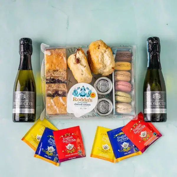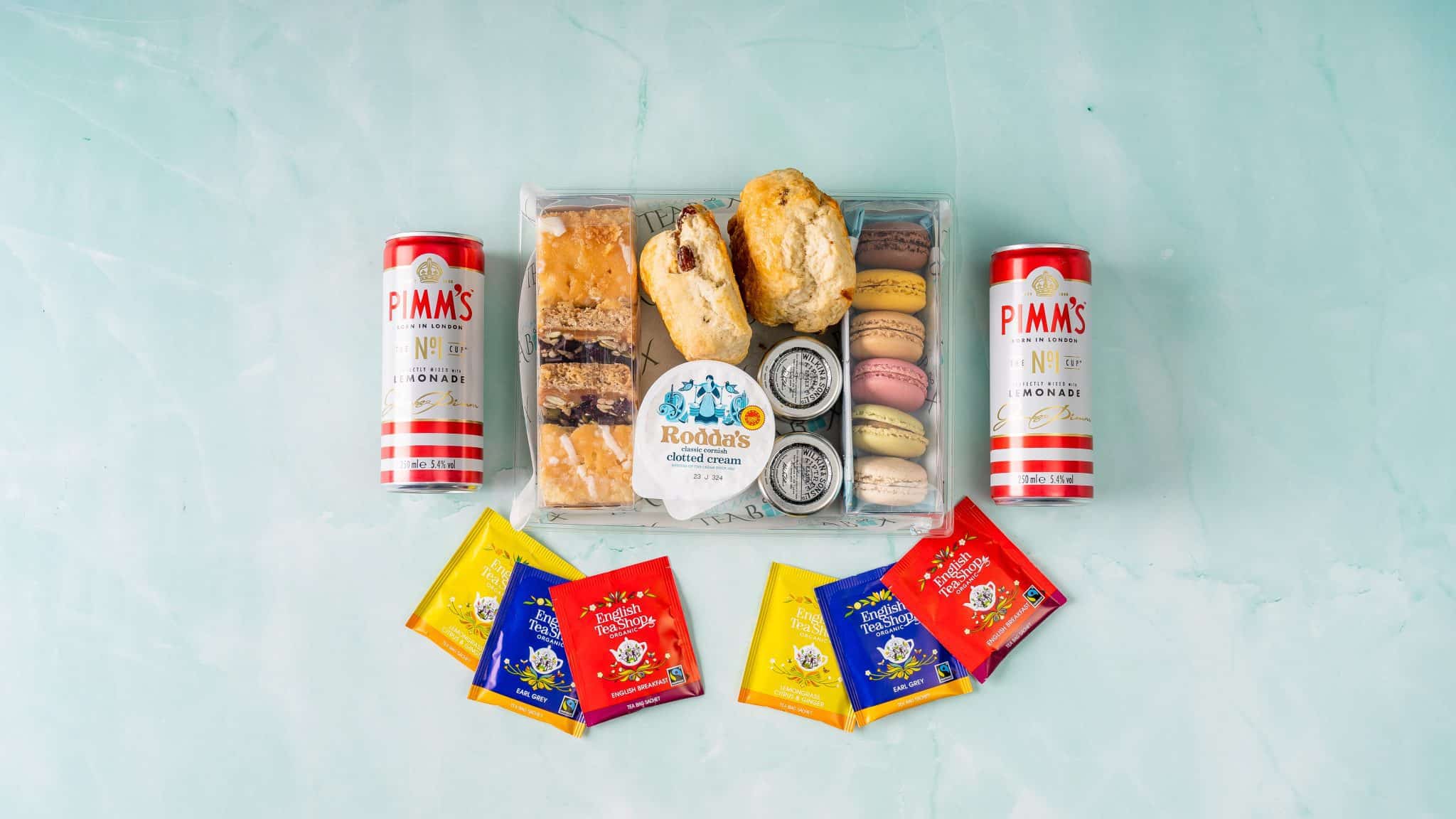 Pimm’s and Lemonade. Handmade Scones, Fruity Strawberry Jam and Cornish Clotted Cream. Caramel Heaven Slices, Zesty Lemon Drizzle Slices, and an assortment of amazing Macarons. Enjoy with a cup of our finest tea! You will have a selection of English Breakfast, Darjeeling, and Earl Grey.